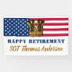 Add the finishing touch to your military retirement party with these USA American Flag design military banners and party supplies. USA American flag in modern red white and blue, stars and stripes, with gold combat boots design. This American Flag party banner is perfect for a military retirement party, military deployments send off, military welcome home celebration, military graduation, and soldiers going away party. Perfect for all military, army, border protection, border patrol, conservation officer, park ranger, game warden, federal law enforcement. Personalize this american flag patriotic banner with your soldiers name and congratulations, welcome home, good luck or happy retirement. See our collection for matching military retirement invitations, military graduation gifts, party favors, and supplies. COPYRIGHT © 2021 Judy Burrows, Black Dog Art - All Rights Reserved. USA American Flag Gold Boots Military Retirement Banner