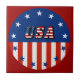 USA - American Flag & Stars in Circle Ceramic Tile