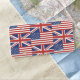 A decorative red white and blue pattern of the British Union Jack and America's Old Glory flags.