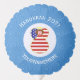 Balloon shows a red haired angel wearing the flag of the United States of America for holiday gift decorating or Hanukkah decor for your party. The USA Flag angel is found inside a white fractal circle of squiggly squares. The background is a blue fractal squiggly squares. Add your own text or personalize with a name and the year.