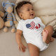 I love this onesie, it's adorable! The material is amazing so soft and the color is a perfect sky blue. When my daughter-in asked me to help with her Baby Shower, I was thrilled. It was co-ed & the theme was Cookie Monster. I had no idea that the whole world was after that big blue Monster. Thank goodness for Zazzle, I got most of the party supplies here. Then I found this onesie! They made my customization so easy. The colors are awesome. I wrote the word "Loved" across the bottom of the Cookie Monster in red letters when I was putting it together. I saw the preview & liked it. But to see it in person, OH, it was fantastic, they do exceptional work! I am so glad that I found this onesie/bodysuit. The production time and shipping were exactly what I was told, which made it easy to plan the party. Packaging was nice as well. If you are looking at this product, look no further, I highly recommend it! I'm certain that I'll be back to "design" whatever my new Grandson "needs.". The printing on the onesie/bodysuit is crisp, and clean. With perfect colors that blend well with the blue background of the basic material. We are so happy with how it came out.