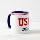 Show your Olympic support with every sip with this coffee mug shown in a red, white, and blue USA print.