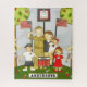 Unique family gift puzzle featuring dad boy scout, mom with baby, and two young kids plus the American flag. To personalize edit text to change name and the year.