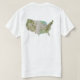 The front of this t-shirt bears a small USA flag with its familiar red and white stripes with white stars on blue canton, while the back displays a relief map of USA. Available on t-shirts, sweatshirts, polos, long-sleeves and more.