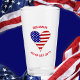 Personalized beer or drinking glass designed to share your love of all things American, a large apron with a heart-shaped flag of the red, white, and blue flag of the United States of America and a blue background. Above is a spot for your name (or someone else's, if this is a gift), below a place to write an occasion (birthday, Valentine's Day, Independence Day, etc.) and year. Enjoy your event while honoring your love of your heritage. Great housewarming gift. Terrific for family reunions and friend reunions, too.