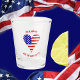Personalized shot glass designed to share your love of all things American, a large apron with a heart-shaped flag of the red, white, and blue flag of the United States of America and a blue background. Above is a spot for your name (or someone else's, if this is a gift), below a place to write an occasion (birthday, Valentine's Day, Independence Day, etc.) and year. Enjoy your cookout or barbeque while honoring your love of your heritage. Great housewarming gift. Terrific for family reunions and friend reunions, too.