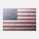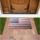 Outdoor or indoor home décor unique custom patriotic doormats. Modern cool triangle geometric mesh America 4th of July stars and stripes. Light colored USA flag in red white and blue.