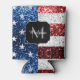 USA flag red white blue sparkles glitters Monogram Can Cooler