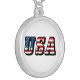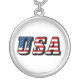 USA Flag Text Round Silver Plated Necklace