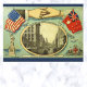 This postcard features an illustration of American fleets visiting Australia in 1908.