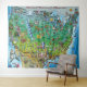 I wanted happier curtains in this window so I made a seamless repeat in the things and colors that make me happy and ordered them in this tapestry then made curtain rod pockets. I love how it came out and I can use the fabric to make something else when I’m tired of them. Excellent. The colors are bright and look great the fabric is soft and hangs well.