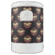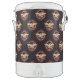 USA Gold Eagle and Flag (Igloo Beverage Cooler) -A decorative USA flag sits in a circular shape, tiled as a background pattern. The flag is a combination of flag photography and digital art. A decorative gold eagle embellishment sits on top the circled flag. Text circles around and reads: UNITED STATES OF AMERICA. The background is black. The text is red. This design has a patriotic feel but is suitable for any time of the year. The design is available in assorted colors.