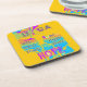 This is an item that I'd recommend for any special occasion or event. A memorable parting souvenir, after a spectacular time with family, friends or co-workers. Happily satisfied with the overall coaster: Bright Vibrant Colors; Accurate print & fonts as chosen; Sturdy material, which will last for a long time; Easy to clean with a wipe or two (don't intend on washing the bottom, which is cork)...