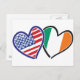 USA Ireland Heart Flags Postcard