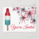 Postcard an original marker illustration of a red white and blue rocket pop popsicle and a burst of fireworks. Simply personalize the text for a unique July 4th cookout, picnic, party, or event invitation.