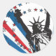 Statue of Liberty vector art graphics of the colossal sculpture on Liberty Island, New York City on Stars and Stripes background. A gift by France to the United States, the statue represents Libertas, the goddess of freedom. USA flag backdrop. Vector from FreeVector.com