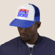 A fun patriotic USA lettered road sign style all American United States of America Independence Day Fourth of July or any day red white and blue fun bright bold unique fun style digital art creative American Pride trucker hat. Get a fun USA cap today.