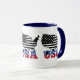 This bold and patriotic ceramic mug features the United States map in black and white, cleverly designed in the shape of the American flag. Below the map, the word "USA" is proudly displayed in the vibrant colors of the red, white, and blue of the American flag. A perfect way to show off your American pride while enjoying your favorite beverage. Ideal for everyday use or as a gift for anyone who loves their country.