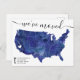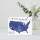 USA Map white heart moving announcement with navy blue watercolor, move the heart to your state, the map color is fully customizable.
