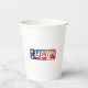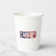 Fun paper cups featuring red, white, and blue, along with "USA." Use the template to personalize. You can keep the text or change.