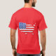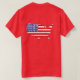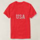 Show your patriotism with a very patriotic t-shirt design with the iconic USA on the front in bold light grey font and on the back the USA flag in the shape of the United States. You can place this on any of the shirts styles and also change the shirt color to suit then you can also edit the text color to suit.