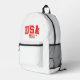 This cut and sew backpack is shown in a patriotic USA flag, and stars print.
