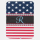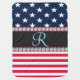 Patriotic stars and stripes United States of America pattern. Diamond edges on the name band. Perfect personalized gift for anyone who loves the USA. Suitable for birthdays, or any occasion such as the 4th of July. All images and artwork ©allmonograms store.