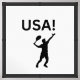USA tennis player using the dot of the exclamation point as a ball. Black picture on a white background
