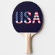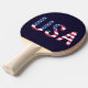 USA Text American Flag on Custom Navy Blue Sport Ping-Pong Paddle