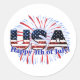 USA text flag glitters fireworks Happy 4th of July Classic Round Sticker