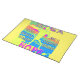 Purchased for a sister who throws Halloween block parties. Even with all the other stuff she has for this, I know she does not have this Exact one. Yeah personalization! Placemat has nice heft and is seamed around the edges well. Purchase complementary items too. Print is clear and well centered.