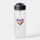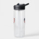 A fun water bottle featuring red, white, and blue, along with "USA." Use the template to personalize. You can keep the text or change.