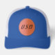 Custom Leather Patch Hat, Sytle: Adult Retro Trucker Cap, Color: Heather / Black, Shape: Circle