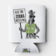 Use The Zebra Crossing Can Cooler. A cartoon zebra wearing sunglasses and a green jacket struck an elegant pose, carrying a plaque urging everyone to "use the zebra crossing!"