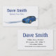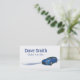 Photo of a blue compact car on a modern looking background with a stylish brush stroke behind the car. Use the front of the business card for all your information or just the company name and salesman's name. Use the back for the rest of your contact inforamtion. Great business card for new and used car sales people, car detailers and automotive service centers.