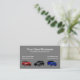 Simple used car dealer business card template for the automotive industry in an organized layout with image of three passenger cars including a compact SUV and two generic automobiles in the background. Designed for a dealership, auto repair shop, or retail car sales.