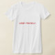 The material is a great quality that is hard to find with most tee shirts. Fabric was not see-through or thin at all, but was also very soft and comfortable. The shirt description states that it runs a little small, so I sized up one size for a perfect fit! I would definitely buy this type of tee shirt again because I love the fit and high quality fabric that I cannot find anywhere else. The printing was perfect and just as pictured. Loved the cute quote and really enjoy the tee in both the quality and design. I love quirky typography designs and funny quotes and I am extremely pleased with the overall quality and value I get at Zazzle!
