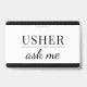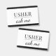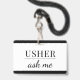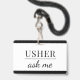 A modern usher ask me name badge for event, or theater ushers. Customize with your name. Modern, simple, style.