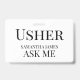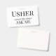 A modern usher ask me name badge for event, or theater ushers. Customize with your name. Trendy script type. Modern, trendy, simple all purpose badge.