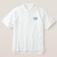 Classic polo shirt for the usher is shown in white with bright blue embroidered letters.