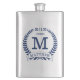 These 8 oz. metal flasks are a great favor for the ushers in your wedding. They are traditional yet modern with a blue laurel wreath and banner with the wedding date, title/job and first initial and first name all in blue. They'd be great for a bachelor party or weekend.