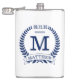These 8 oz. flasks are a great favor for the ushers in your wedding. They are traditional yet modern with a blue laurel wreath and banner with the wedding date, title/job and first initial and first name all in blue. They'd be great for a bachelor party or weekend.