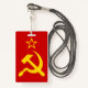 Yellow hammer and sickle on red flag. Historic flag of the Soviet Union.