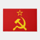 Yellow hammer and sickle on red flag. Historic flag of the Soviet Union.