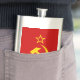 The product is a good size and came exactly as it was pictured. The lid is not attached to the flask, which could be dangerous on drunken nights... The print came out surprisingly well and looks very sharp. Would definitely recommend.