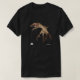 Utahraptor was about three times longer and taller than the more famous Velociraptors but weighed about thirty times more. They had huge "killer" claws, around 9in/24cm long, located on each hind leg. I tried to show a fast, agile Utahraptor in my design. Utahraptor design is on a dark shirt.
