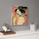 Utamaro: Kushi (Comb), ca. 1785 Kushi (Comb). Vintage Japanese Print shows a bust portrait of a woman holding a transparent comb in front of her face. Color woodcut by Utamaro Kitagawa, 1780's.