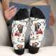 These festive socks are a purr-fect Christmas gift for any cat lover! Featuring an adorable repeating pattern of various cats wearing Santa hats and surrounded by classic holiday decorations like ornaments, pine branches, holly, and ribbon-tied presents on a crisp white background. These cozy and stylish socks are ideal for spreading holiday cheer and showing off your love for all things feline during the Christmas season.