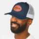 Custom Leather Patch Hat, Sytle: Adult Retro Trucker Cap, Color: Heather / Black, Shape: Circle