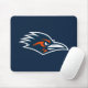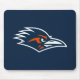 This design features the official logo of the UTSA Roadrunners, the athletic teams of the University of Texas at San Antonio. The logo prominently displays a stylized roadrunner head, facing right, rendered in the university's official colors: dark blue, orange, and white. The roadrunner's head is depicted with a sharp, determined expression, symbolizing the team's competitive spirit. This logo is used across a variety of products and platforms to represent the UTSA Roadrunners, showcasing university pride and team support.